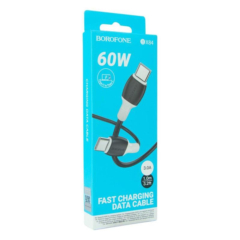 Кабель Borofone BX84 Type-C to Type-C – це універсальне рішення для швидкого заряджання сучасних смартфонів, планшетів і навіть ноутбуків. Аксесуар реалізований у стильному дизайні, представленому оригінальним чорно-білим забарвленням. Його висока якість виконання визначає виняткову надійність, довговічність і абсолютну безпеку гаджетів, що підключаються ним. Конектори виготовлені з використанням оксидованого алюмінію, що має стійкість до корозії, захищені практичними пластиковими корпусами із округленими гранями та ребристою текстурою в місцях з'єднань з кабелем. Зовнішнє обплетення має приємну на дотик поверхню, виконану з полівінілхлориду, який забезпечує захист кабелю від розтягувань, розривів, зламів, перешкоджає його сплутуванню. Сердечник із 72 мідних провідників дозволяє аксесуару передавати дані, проводити струм силою до 3А та витримувати потужність 60Вт. Встановлення з'єднання між пристроями здійснюється через Type-C – Type-C. Довжина кабелю складає 1м.