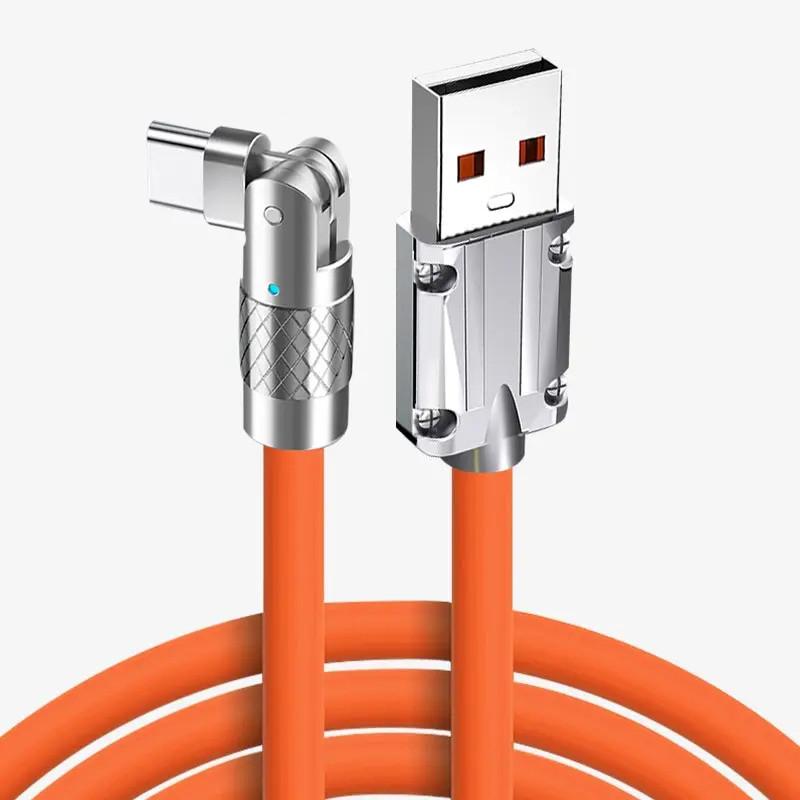 Поворотный кабель для быстрой зарядки USB Type-C 6A Поворотный кабель USB Type-C 120w - кабель нового поколения для быстрой зарядки гаджетов и скоростной передачи данных, который предлагает еще больше удобства пользователям. А именно - поворотный разъем на 180°, который легко изменяет свою геометрию, превращаясь из стандартного прямого в L-образный, что бывает очень удобно, если пользоваться гаджетом одновременно с его подзарядкой. Кабель рассчитан на поддержку 6-амперной зарядки, что значительно ускорит процесс заряжания батареи вашего смартфона или планшета. Еще одной отличительной чертой кабеля называют высокую надежность и долговечность кабеля: тестовые 3000 изгибов под разными, в т.ч. "экстремальными", углами показали отличную работу кабеля как при быстрой зарядке, так и при передаче цифровых данных. Кабель имеет оранжевую расцветку, которая так нравится многим пользователям. На корпусе разъема Type-C присутствует светодиодная индикация приятного синего цвета: ее мягкое, не раздражающее свечение бывает полезным, когда нужно найти в темной комнате заряжающийся смартфон. Длина 1.5 метра считается оптимальной для большинства ситуаций. Особенности: - 6А SurepQuick Charge; - Уникальный дизайн; - Высокое качество; - Быстрая и безопасная зарядка; - Стабильная передача данных; - Повышенная прочность; - Поворотный кабель 180°; - Светодиодная индикация. Технические характеристики: - Тип кабеля: USB - Type-C; - Назначение: зарядка и передача данных; - Пропускная способность: 6A; - Материал сердечника: Цинковий сплав; - Длина: 1.5 метра; - Цвет: Оранжевый. Артикул: VA-1430294650