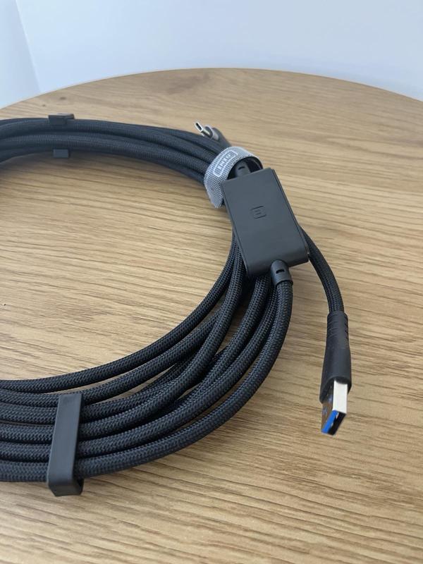 Це кабель USB-C, який є універсальним стандартом роз'єму для передачі даних та живлення. Особливості: Кабель має текстильне обплетення для додаткової міцності та фіксатор на липучці для зручного зберігання. Застосування: USB-C використовується для підключення різних пристроїв, таких як смартфони, ноутбуки, планшети та периферійні пристрої. Сумісність: Роз'єм USB-C є двостороннім, що робить його зручним у використанні, і він сумісний з новітн