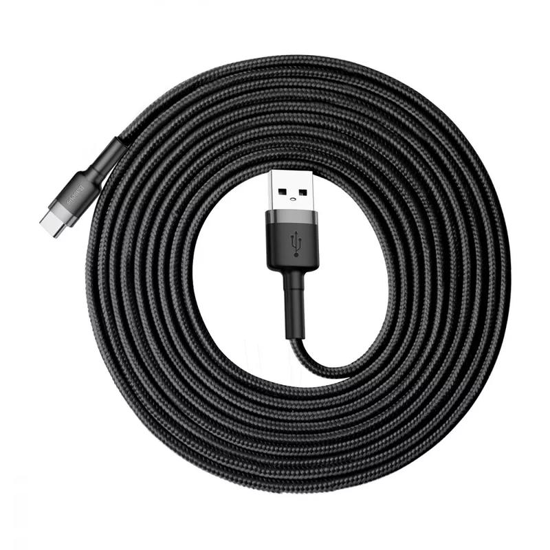 Baseus Cafule Type-C 2A (3m) - кабель для заряджання та передачі даних з роз'ємом Type-C. Основні характеристики: - підходить для всіх пристроїв з інтерфейсом Type-C; - максимальна сила струму: 2 А; - швидкість передачі: 480 Мбіт/с; - матеріал: алюмінієвий сплав+ТЕП+нейлон; - у комплекті фіксатор на липучці; - довжина: 3 м. Універсальне використання Кабель підходить для живлення пристроїв, що оснащені роз'ємом Type-C: смартфонів, планшетів, портативних акумуляторів тощо. Довжина 3 м зручна для підключення навіть на великій відстані від джерела живлення, а фіксувальна липучка допомагає компактно згорнути кабель і спрощує його зберігання. Швидка зарядка та передача даних Baseus Cafule Type-C підтримує силу струму 2 А, завдяки чому заощаджується час заряджання. А зі швидкістю 480 Мбіт/с можна синхронізувати пристрої або передавати файли за лічені секунди. Захисні властивості Конектори кабелю виготовлені з алюмінієвого сплаву, стійкого до корозії та механічних пошкоджень. Вони не перегріваються, тому не шкодять батареї ваших гаджетів. Корпус конекторів покритий зносостійким термоеластопластом. Міцне нейлонове обплетення приємне на дотик і витримує до 10000 згинань без появи тріщин та розривів.