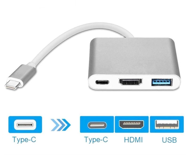 Перехідник адаптер 3 в 1 usb type-c — hdmi / usb 3.0 / usb type-c silver (6249)