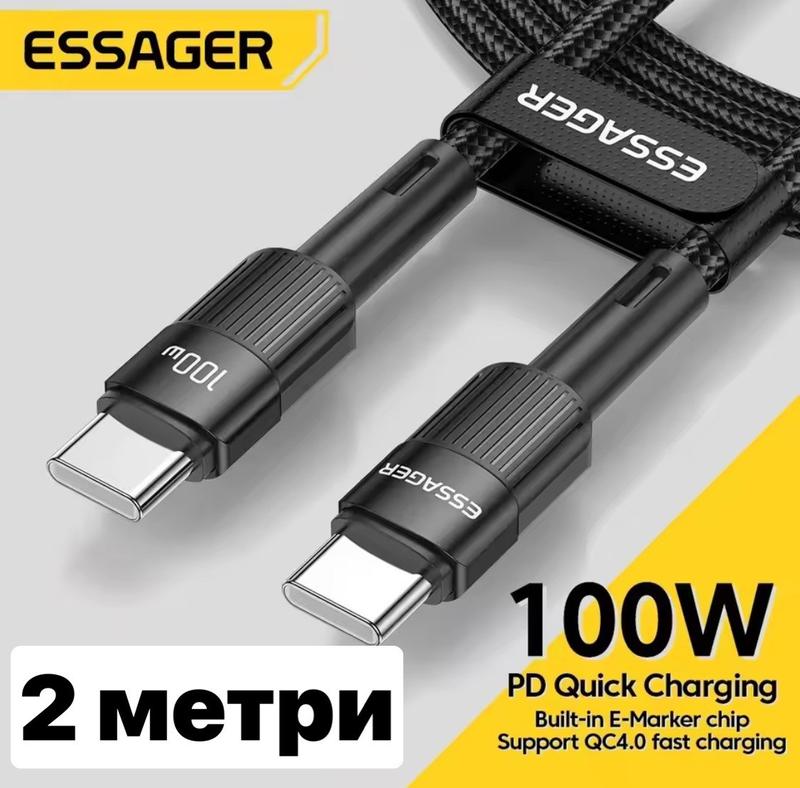 Кабель швидкої зарядки 100w 5a type c до type c для xiaomi samsung macbook ipad планшет но...