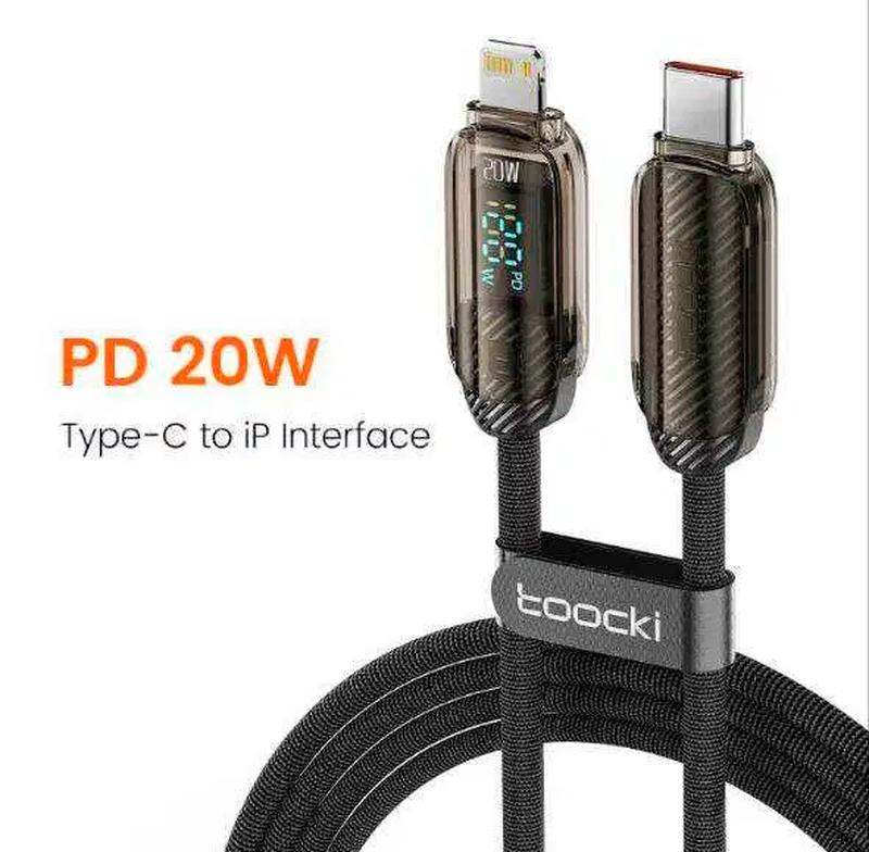 Кабель Toocki PD 20W Type-C - lighting с дисплеем черный для iPhone Новый в упаковке. Длина 1 м.