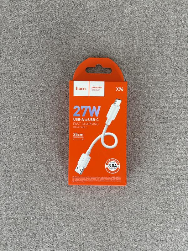 Кабель hoco X96 — это компактный и надёжный провод для быстрой зарядки и передачи данных. Длина 25 см делает его идеальным для использования с пауэрбанком или в машине , а поддержка мощности до 27 Вт и тока 3A обеспечивает стабильную и быструю подзарядку гаджетов. Отличный вариант для повседневного использования.