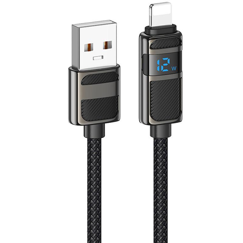 Дата кабель hoco u137 line with display usb to lightning 2.4a/12w (1.2m) black