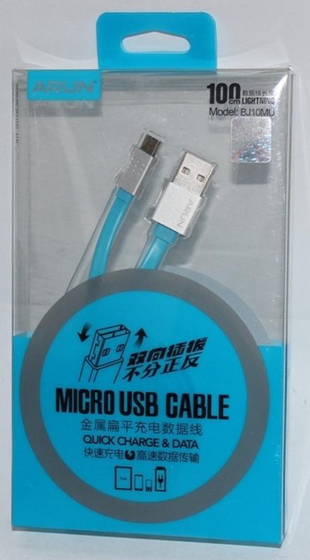MicroUSB кабель Arun, отличного качества, силиконовый тип "лапша", длина кабеля 100 см.