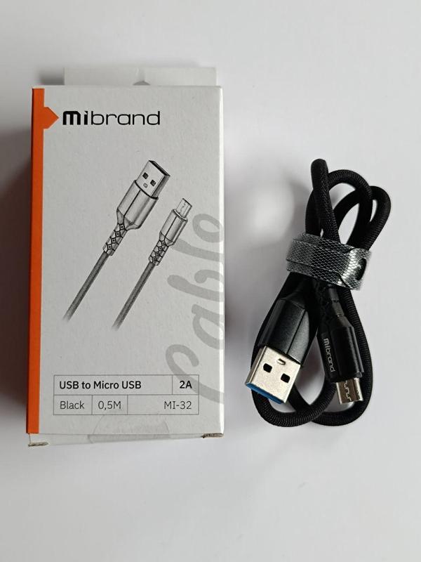 Шнур usb-microusb mibrand mi-32 (0.5m 2.0a, black, уп)