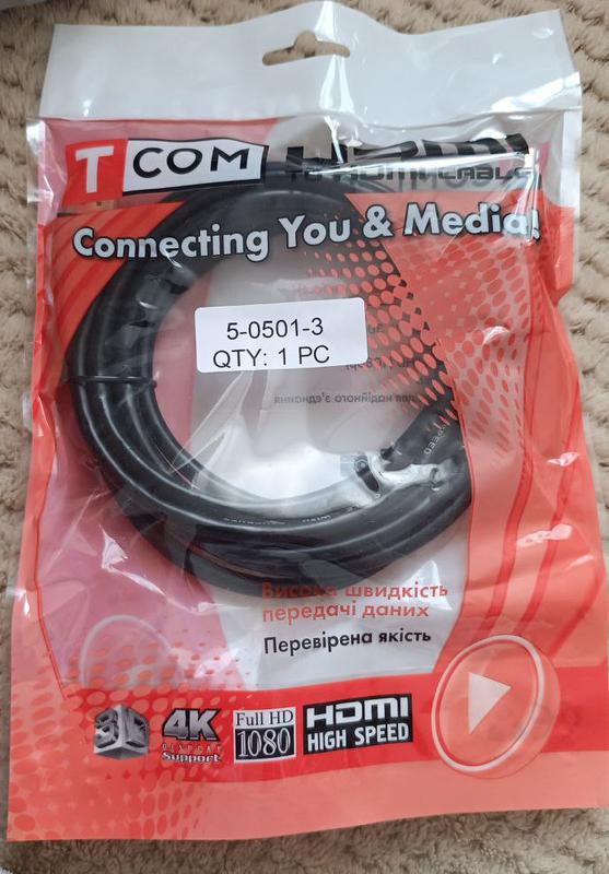Шнур штекер hdmi - штекер hdmi tcom 5-0501-3 (v-1.4, ø6мм, 3,0m черный)