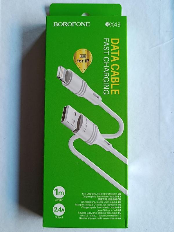 BOROFONE BX43 CoolJoy кабель для зарядки и передачи данных для Lightning, 1 м, ток до 2.4A 1. Длина: 1 метр. Вес: 17 г. 2. Внешняя оплетка: PVC. 3. Материал коннектора: PVC. 4. Ток до 2.4A.