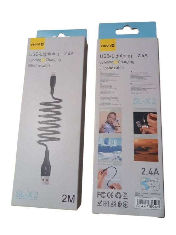 Кабель lightning 2.4a (2m) veron x2 silicone