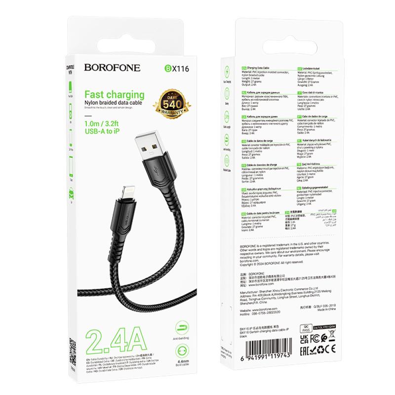 Data Cable Borofone BX116 Certain Lightning 1m Характеристики Data Cable Довжина кабелю100см Тип роз'ємуLightning Надійний та швидкий кабель Lightning Borofone BX116 Certain довжиною 1 метр - ідеальне рішення для зарядки та синхронізації вашого iPhone, iPad або iPod. Виготовлений з якісних матеріалів, що забезпечують довговічність та стійкість до зношування. Оптимальна довжина кабелю забезпечує зручність використання вдома, в офісі чи в подорожах. Підтримка швидкої зарядки та передачі даних робить Borofone BX116 Certain незамінним аксесуаром для власників пристроїв Apple. Компактний та легкий, легко поміщається в сумці чи кишені. Купуйте Borofone BX116 Certain 1m - гарантія якості та надійності для вашого гаджета.