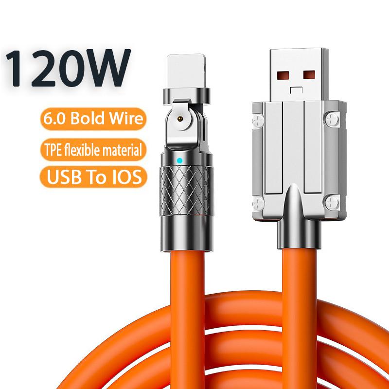 Кабель для швидкого заряджання Lightning Super Fast Charge 120w 6A (150 см) оранжевий, з підсвічуванням, поворотний 180 °. Поворотний Lightning кабель Super Fast Charge - це ваш надійний супутник для швидкого заряджання пристроїв Apple. Цей кабель забезпечує ультра-швидку зарядку потужністю 120W та струмом до 6A, що робить його ідеальним рішенням для власників iPhone, iPad та інших пристроїв із роз'ємом Lightning. Ще однією відмінністю кабелю називають високу надійність і довговічність кабелю: тестові 3000 вигинів під різними, в т.ч. "екстремальними" кутами показали відмінну роботу кабелю як при швидкій зарядці, так і при передачі цифрових даних. Кабель має помаранчеве забарвлення, яке так подобається багатьом користувачам. На корпусі роз'єму Type-C присутня світлодіодна індикація приємного синього кольору: її м'яке, не дратівливе свічення буває корисним, коли потрібно знайти в темній кімнаті смартфон, що заряджається. Довжина 1,5 метра вважається оптимальною для більшості ситуацій. Не допускайте, щоб повільна зарядка заважала вашій продуктивності. З Lightning кабелем Super Fast Charge, ви завжди будете готові до дії, заряджаючи свої пристрої швидко та ефективно. Перейдіть на ультра-швидку зарядку з цим надійним кабелем і залишайтеся завжди на зв'язку. Особливості: - 6А SurepQuick Charge; - Унікальний дизайн; - Висока якість; - Швидка та безпечна зарядка; - Стабільна передача даних; - Підвищена міцність; - Поворотний кабель 180 °; - Світлодіодна індикація. Технічні характеристики: - Тип кабелю: Apple Lightning; - Призначення: зарядка та передача даних; - Пропускна спроможність: 6A; - Матеріал осердя: Цинковий сплав; - Довжина: 1,5 метра; - Колір помаранчевий. Артикул: VA-1430294713