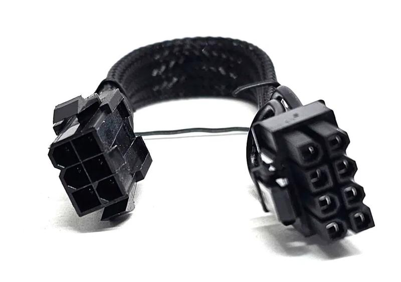 Переходник для видеокарты 6->8 pin 18AWG 20 см в оплетке кабель GPU Для приобретения товара нажмите на кнопку "Купить". 20 см длина без коннекторов. Кабель 18AWG. Переходник питания 6pin на 8 (6+2) pin (снимается 2 пина) для видеокарт. Нужно тем, у кого блок питания не дает 8 пин для видеокарты, или нужно включить несколько карт. Переходник для видеокарты 6->8 pin 18AWG 20 см в оплетке кабель GPU