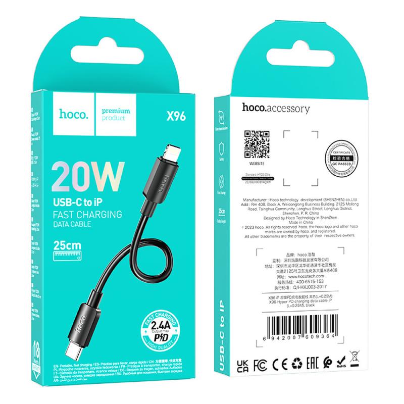 Кабель Type-C - Lightning 0,25м Hoco X96 * * * Мінімальна загальна сума замовлення в кошику -- 333грн. Наш графік роботи: сб-чт 09:00-17:00. Замовлення, оформлені після 16:30, будуть прийняті та оброблені на наступний робочий день! Товар вартістю до 15$ поверненню та обміну не підлягає!!!