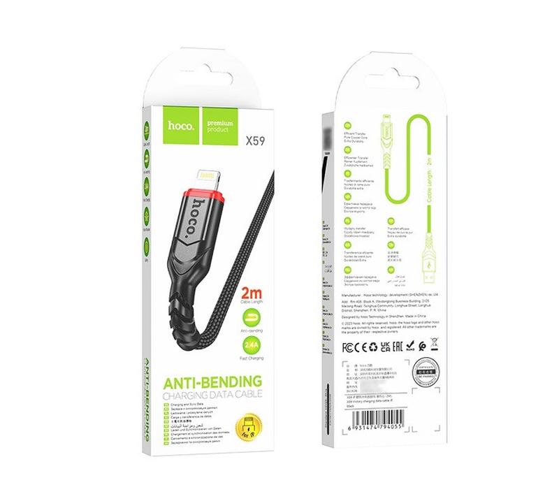 Кабель USB - Lightning 2м Hoco X59 Матеріал : нейлонове обплетення * * * Мінімальна загальна сума замовлення в кошику — 333,00 грн. Наш графік роботи: Нб-ш09:00-17:00. Закази, оформлені після 16:30, будуть прийняті та оброблені наступного робочого дня! Товар вартістю до 15$ поверненню та обміну не підлягає!!!