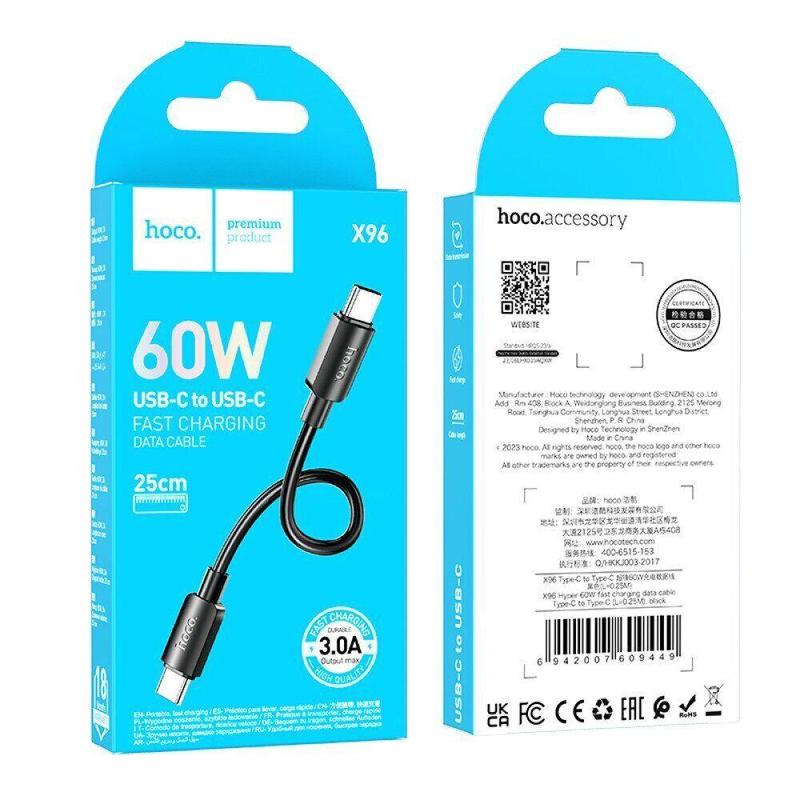 Кабель Type-C - Type-C 0,25м 60W Hoco X96 * * * Мінімальна загальна сума замовлення в кошику -- 333грн. Наш графік роботи: сб-чт 09:00-17:00. Замовлення, оформлені після 16:30, будуть прийняті та оброблені на наступний робочий день! Товар вартістю до 15$ поверненню та обміну не підлягає!!!