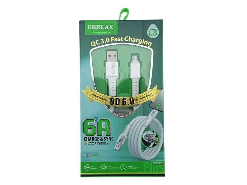 Кабель microusb l3 белый 6а super charge тм gerlax