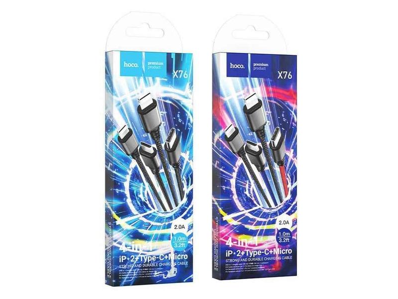 Кабель 4в1 (microusblightning2xtype-c) x76 2a тканевый 1м тм hoco