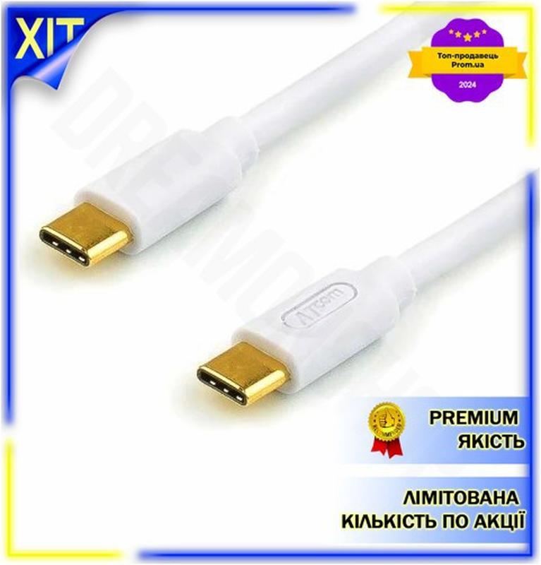 Dm кабель type-c 1.8 спецификация 2.2 м atcom белый для синхронизации и питания 60 вт 3a з...