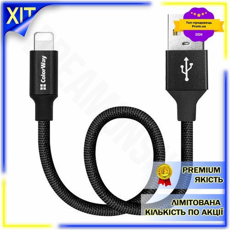 Dm кабель usb am спецификация 2.2 lightning 25 см colorway черный для синхронизации и пита...