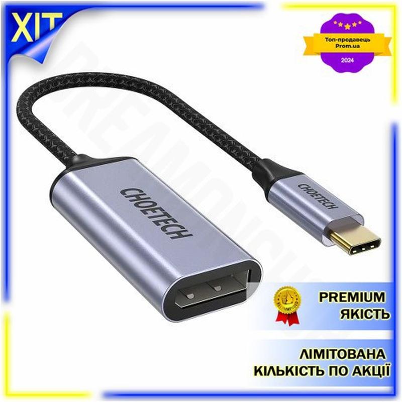 Dm переходник type-c к спецификация 2.2 displayport 4k choetech черный 20 см для подключен...