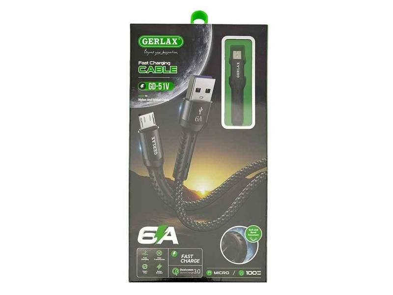 Кабель microusb microusb gd-51v 6а черный тканевый 1м тм gerlax