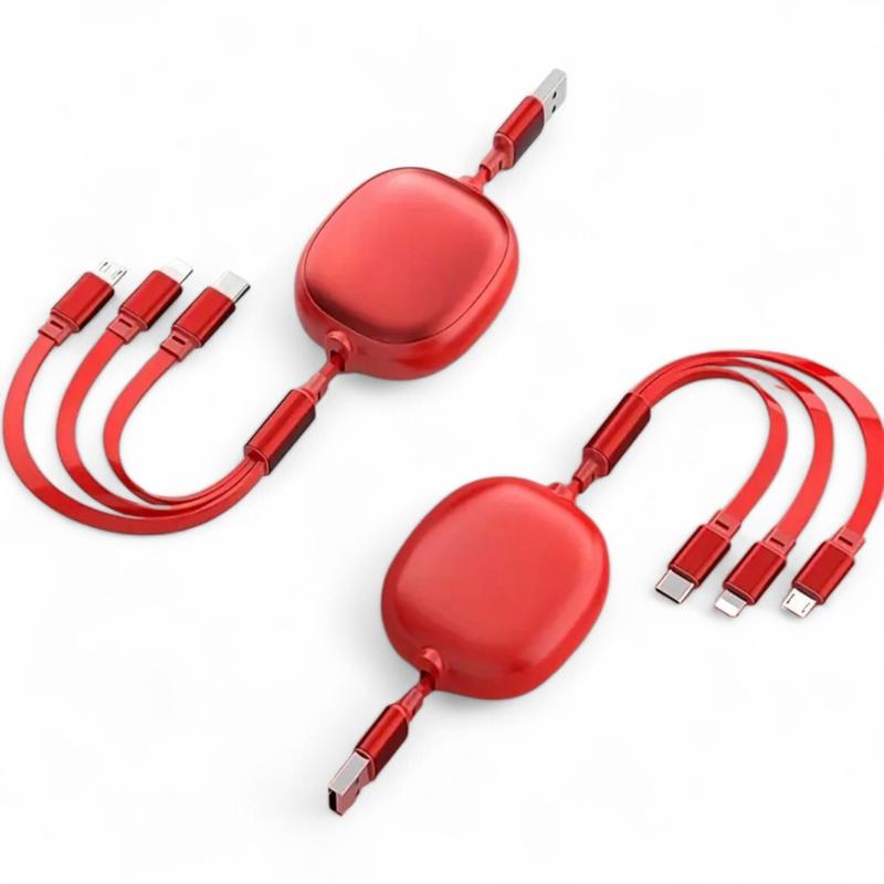 Выдвижной usb кабель 3-в-1 для зарядки, красный | usb-c / micro usb / lightning