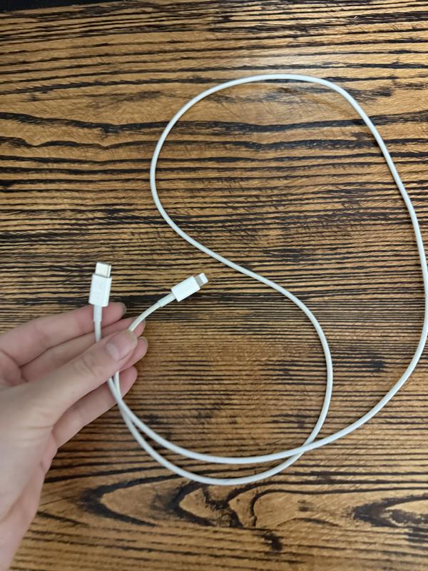 Кабель USB-C → Lightning Білий кабель для заряджання та передачі даних із розʼємом USB-C з одного боку та Lightning з іншого. Призначений для зарядки iPhone, AirPods та інших пристроїв Apple з портом Lightning від сучасних зарядних адаптерів USB-C. Підтримує швидку зарядку (за умови сумісного адаптера). Підійде для щоденного використання.