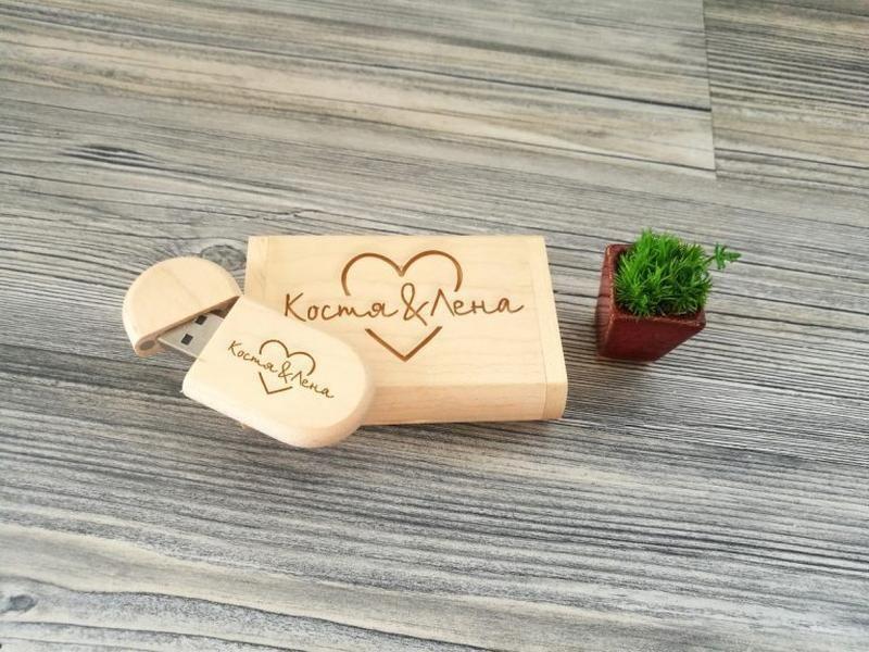 Деревянная флешка в коробке с именной гравировкой для хранения свадебных фотографий, 16-32...