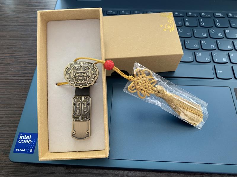 Флеш-памʼять на 119 мб. Очень красивая, в китайском стиле. Можно передать клиенту со своим каталогом