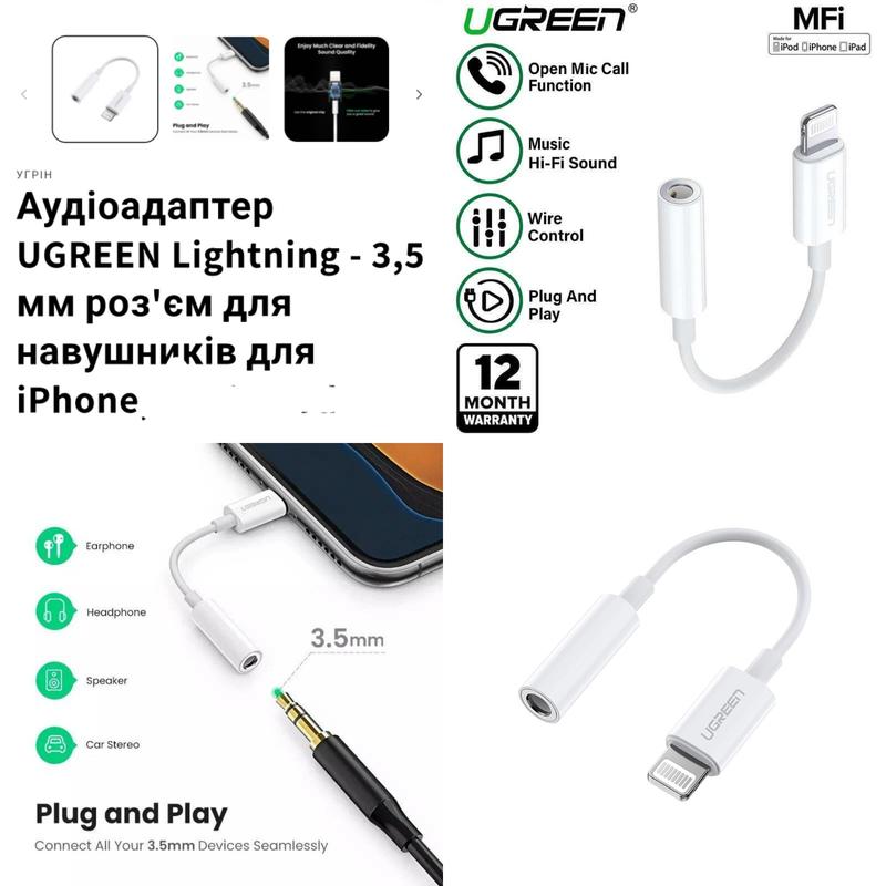 Адаптер сделан для Apple» означает, что устройство разработано специально для подключения к продукту Apple, указанному на значок, и разработчик подтвердил, что оно соответствует стандартам производительности Apple. Устройство не отвечает за работу данного устройства или его аналогов стандартам безопасности и нормативным требованиям. Обратите внимание, что использование этого аксессуара с продуктом Apple может повлиять на его производительность. Apple, iPhone и lightning являются торговыми марками Apple Inc., зарегистрированными в США и других странах. Зроблено для iPhone 11 Pro Max, iPhone 11 Pro, iPhone 11, iPhone XS Max, iPhone XS, iPhone XR, iPhone X, iPhone 8 Plus, iPhone 8, (Phone 7 Plus, iPhone 7 30756 (695*****37564) UGREEN Lightning до 3.5 мм Переходник для наушников НОВЫЙ
