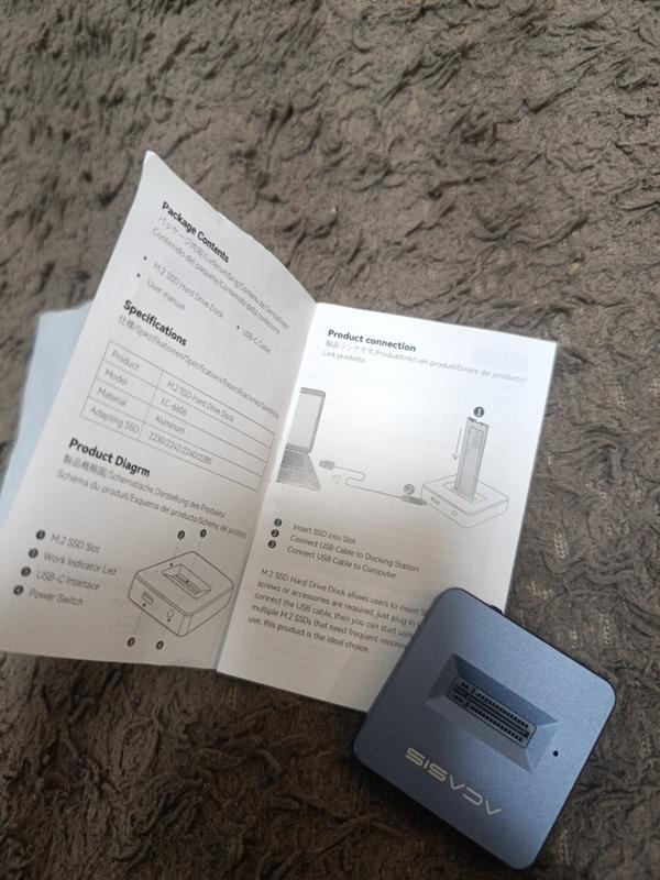 Док-станція Клонирования корпуса Acasis NVME USB 3.1 Gen 2 Док-станция ACASIS M.2 SSD (модель EC-6606) — это устройство, которое позволяет использовать внутренние M.2 SSD-накопители как внешние. Вместо того чтобы устанавливать SSD внутрь компьютера, вы просто вставляете его в док-станцию. Затем док-станция подключается к компьютеру, например, через USB. Это очень удобно для: * Передачи данных: Можно легко копировать файлы с одного компьютера на другой, используя SSD как флешку большого объема. * Резервного копирования: Вы можете использовать SSD для быстрого создания резервных копий важной информации. * Клонирования дисков: Некоторые док-станции (хотя не все) позволяют клонировать данные с одного SSD на другой без использования компьютера. * Восстановления данных: Если в вашем компьютере вышел из строя M.2 SSD, его можно вставить в док-станцию и попытаться восстановить с него информацию на другом компьютере. Проще говоря, это адаптер, который делает ваш M.2 SSD портативным и универсальным. Док-станция Acasis M.2 для NVMe-накопителей с USB 3.1 Gen 2 поддерживает карты памяти до 8 ТБ со скоростью до 10 Гбит/с (около 1000 МБ/с).
