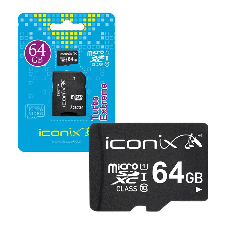Карта памяти microSDHC 64Gb ICONIX, комплектуется адаптером SD.