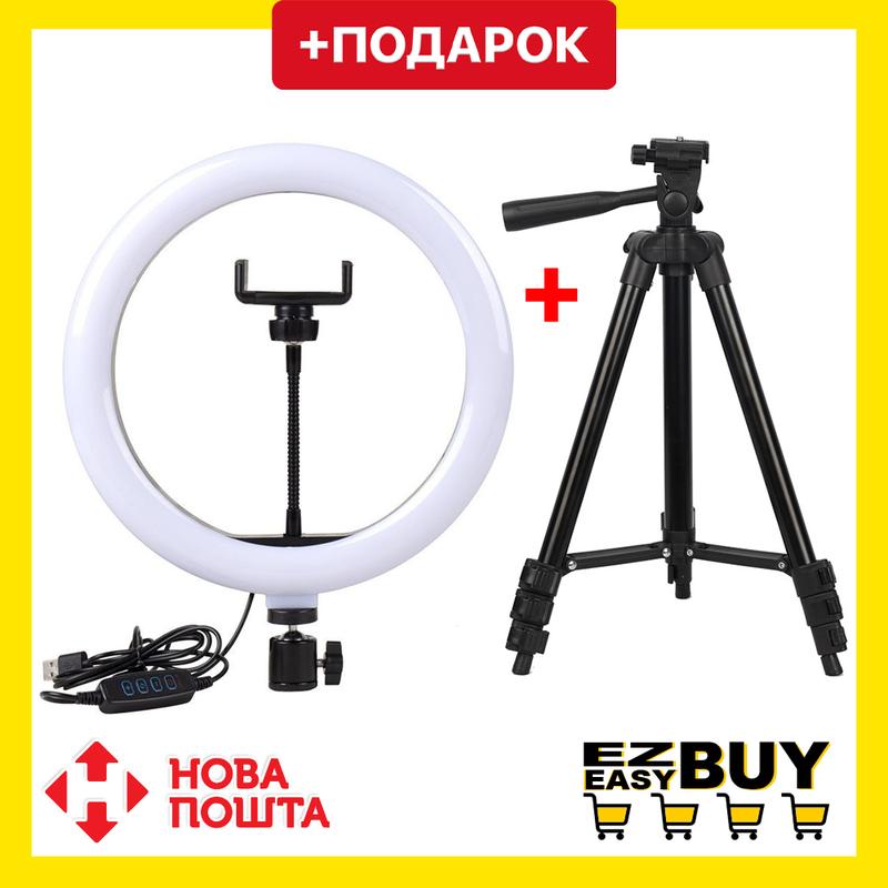 Светодиодное селфи-кольцо led light 26 см + штатив в подарок! кольцевая лампа для фото. кр...