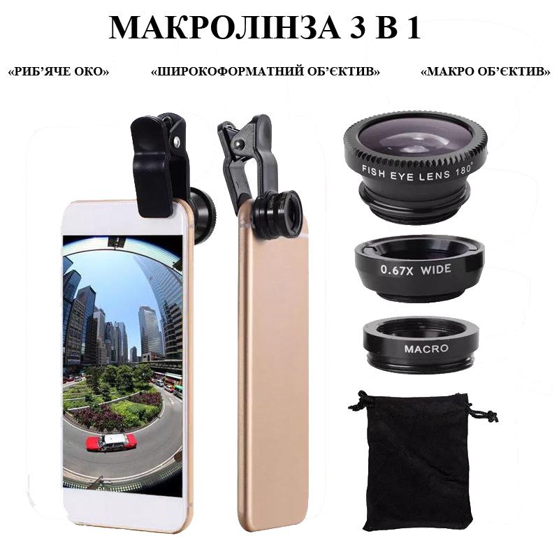 Макролинза, макролинза 3в1 universal clip lens 0.67x wide, macro, fish