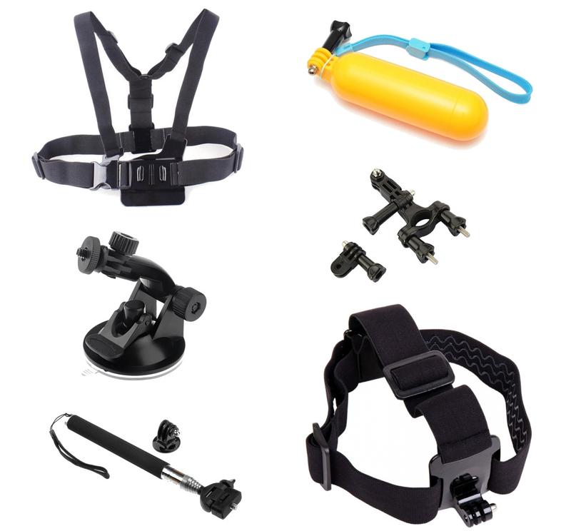 Набір основних кріплень для екшн-камери, зібраний нашим магазином з найпопулярніших позицій. У комплект входить 6 різних аксесуарів: присоска, монопод, поплавець, кріплення на груди, голову, трубу. Набір 6в1 охоплює всі найпоширеніші варіанти установки камери для ведення блогу. Кріплення в комплекті сумісні з усіма екшн-камерами, але для установки Sony і Xiaomi Yi без аквабоксу знадобитися адаптер . Поплавець Незамінне кріплення при використанні екшн-камери в воді. Маючи порожнисту пластикову контракцію, ручка-поплавок забезпечує плавучість собі і камері, яка встановлена на нього. Яскравий колір легко помітити на водній гладі. Разом з поплавком поставляється страхувальний ремінець і кріпильний гвинт. На кермо-трубу Універсальне пластикове кріплення на трубу діаметром від 15 до 35мм з трьох осьовим поворотним кронштейном. Даний тип кріплення надає повну свободу вибору місця кріплення, направлення, кута нахилу і висоти камери щодо закріпленої поверхні. Два останніх параметра мають обмеження в 180 ° і 5 см відповідно. Присосок Уможливлює установку екшн-камери на скляну, металеву, пластикову або будь-яку іншу полірованій поверхні. Нижня частина виготовлена з якісного м'якого силікону і має діаметр 75мм. З регулювань доступна зміна положення 7-ми сантиметрового важеля на 220 ° і повороту кріпильної головки на 180 °. Кріплення на груди Як зрозуміло з назви цей аксесуар допомагає закріпити пристрій запису на груди, тим самим повністю звільнивши руки оператора. Даний варіант має високу популярність серед людей, що записують екстремальні види спорту. Конструкцією передбачений широкий діапазон регулювань: одна на спині, по одній на лямках і дві на поясі. Що робить його універсальним до носіння як на голому тілі, так і на верхньому зимовому одязі. Монопод Телескопічний монопод з регулюванням довжини від 21 до 98см, має прогумовану неслизьку рукоять і страхувальний ремінець. Для установки обладнання використовується штативна різьба 1/4 дюйма. З регулювань присутня зміна кута нахилу в діапазоні 180 °. Кріплення на голову Цей аксесуар не тільки дозволяє повністю звільнити руки, але і створює відео з ефектом відтворення від першої особи. На еластичні стрічки нанесено шар силікону з внутрішньої сторони, що надає надійну фіксацію. Широкий спектр регулювань гарантує можливість надіти кріплення на будь-який розмір голови або навіть на шолом, шапку. Додатково з даним набором поставляється адаптер 1/4 дюйма для кріплень стандарту GoPro .