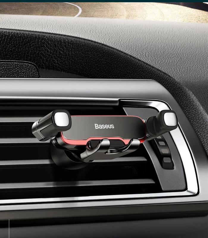 Мега якісний Автомобільний тримач для телефону Baseus, металевий Gravity Auto Air Vent, підставка для мобільного телефону для 4,7-6,5-дюймового телефону, невидима автомобільна підтримка. Колір сірий / чорний. Кріплення силіконова кліпса. Вага 59гр.