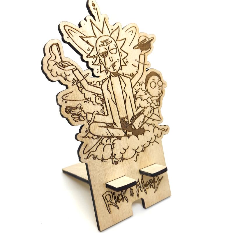 Деревянная подставка держатель "rick and morty" (рик и морти) 17.5х11.5 см на стол