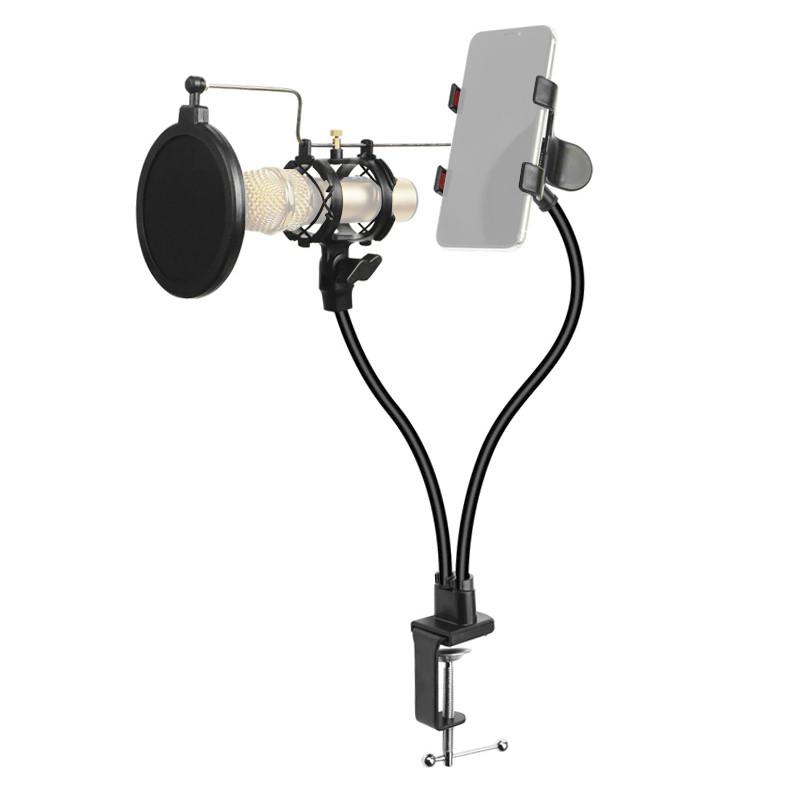 Держатель для смартфона и микрофона от Lesko Для съемки качественного контента, проведения вебинаров и видеоконференций необходимо иметь надежное оборудование, которое обеспечит не только профессиональную картинку и звук, но и будет комфортным в установке и ежедневном использовании. Lesko KH-24 – позволяет записывать видео в любом удобном месте, не прибегая к посторонней помощи. Две гибкие направляющие с креплениями, дают возможность регулировать угол наклона камеры и микрофона, что делает процесс съемки еще более комфортным. Максимально допустимая высота установки – 430 миллиметров. Диаметр держателя для микрофона – 40 миллиметров. В комплект входит поп-фильтр диаметром 86 миллиметров, который подавляет шум дыхания и ударные звуки «б,п,ф» при записи разговора. Держатель смартфона имеет ширину захвата – 110 миллиметров, позволяя закрепить довольно габаритные модели. Приспособление выполнено из пластика и металла высокого качества, материалы без проблем выдерживают высокие нагрузки. Благодаря удобному креплению, держатель надежно устанавливается там, где это необходимо. А разборная конструкция, дает возможность компактно хранить и брать его с собой в поездки или путешествия. Прорезиненные изнутри прищепки, надежно удерживают смартфон, и не оставляют после себя царапин на корпусе и экране. С подобной аппаратурой, создание контента станет простым и веселым занятием.