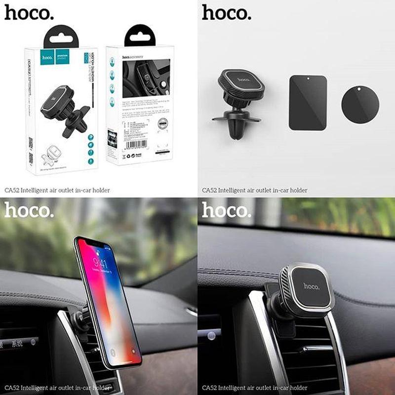 Автодержатель магнитный Hoco CA52 Intelligenr Air Outlet Magnetic -этот универсальный автомобильный магнитный держатель Hoco CA52 Intelligent Magnetic Air Outlet Holder Black отлично подойдёт для Вашего смартфона и не габаритного планшета. Крепится аксессуар на вентиляционную решетку автомобиля. Два магнитные пластины, идущие в комплекте, можно приклеить на смартфон, планшет или GPS-навигатор.