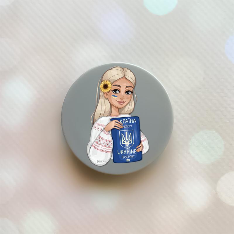 Держатель для смартфона / планшета попсокет popsocket серый :: девушка с паспортом (принт...