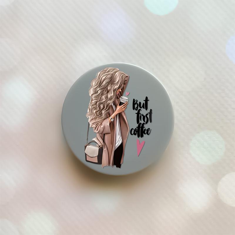 Держатель для смартфона / планшета попсокет popsocket серый :: девушка с кофе (принт 114)