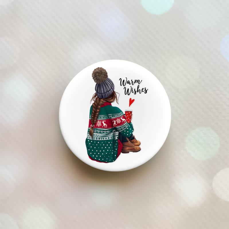 Держатель для смартфона / планшета попсокет popsocket белый :: девушка с кофе (принт 136)