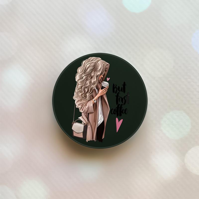 Держатель для смартфона / планшета попсокет popsocket черный :: девушка с кофе (принт 114)