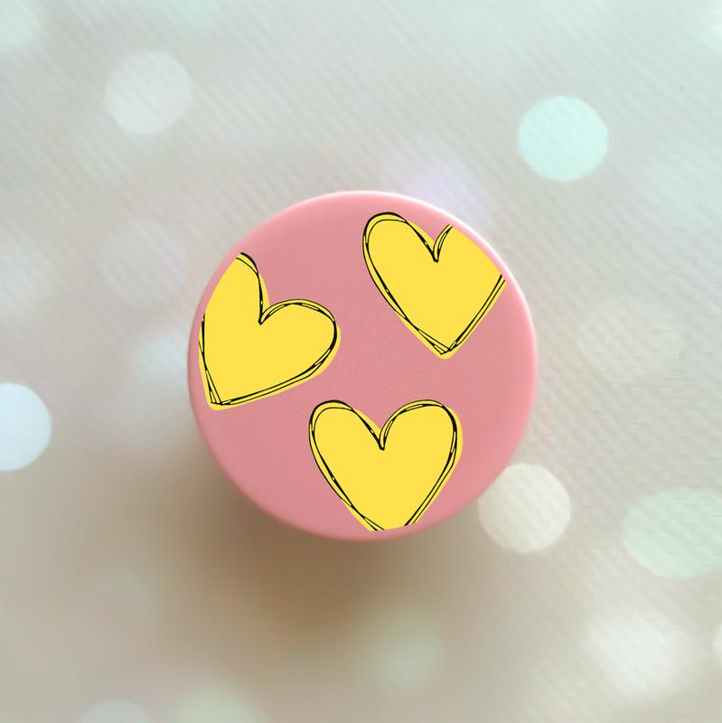 Тримач для смартфона / планшета попсокет popsocket рожевий :: сердечка жовті (принт 259)