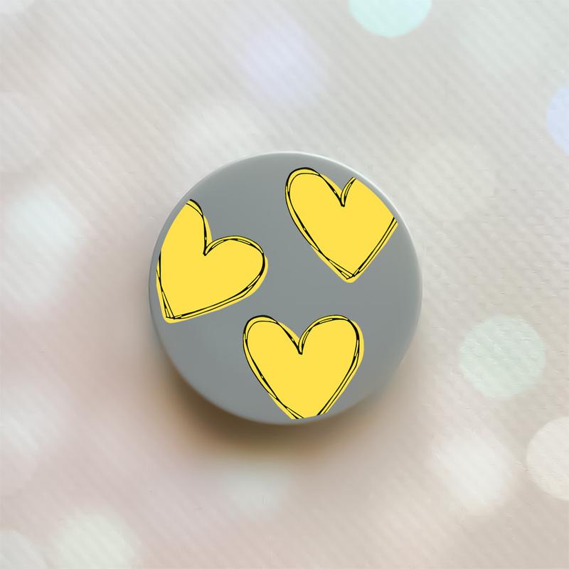 Держатель для смартфона / планшета попсокет popsocket серый :: сердечки желтые (принт 259)