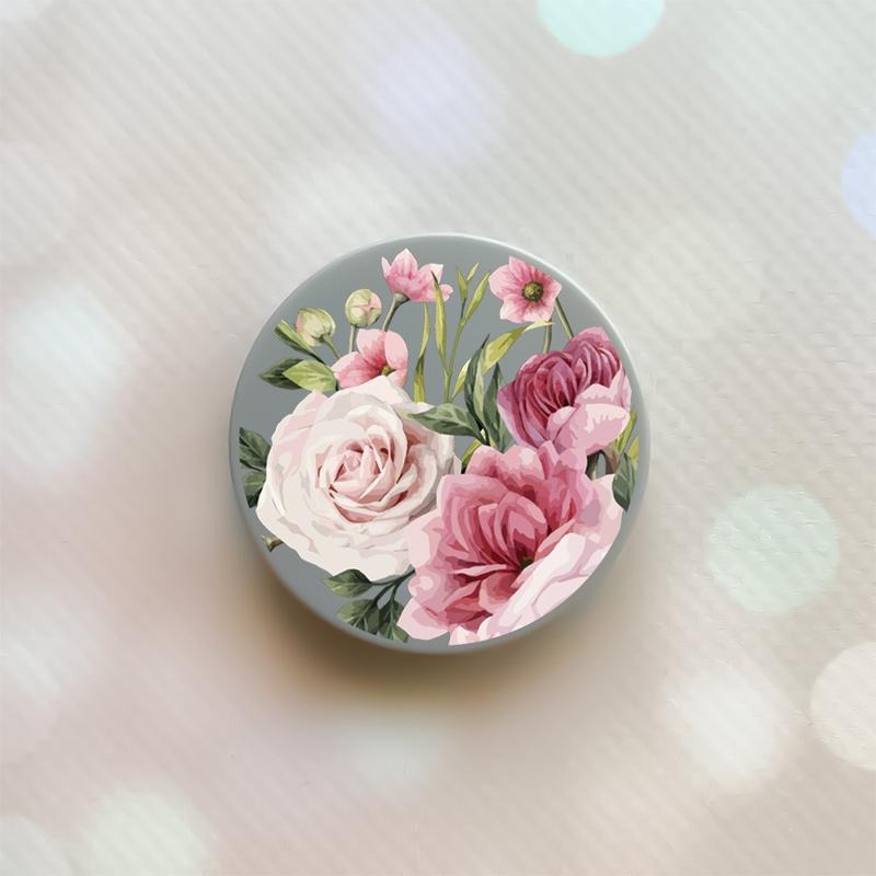Держатель для смартфона / планшета попсокет popsocket серый :: розовые цветы (принт 287)