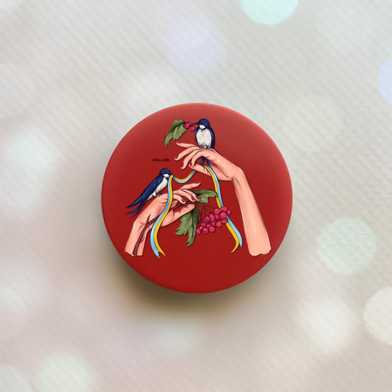 Держатель для смартфона / планшета попсокет popsocket красный :: ласточки (принт 15)