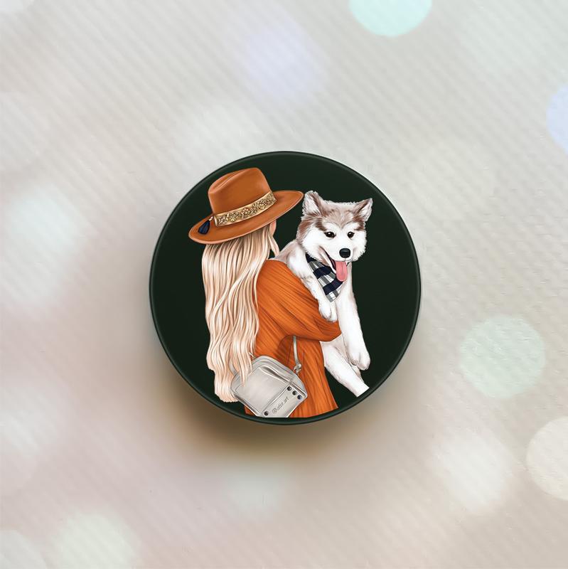 Держатель для смартфона / планшета попсокет popsocket черный :: девушка с собачкой (принт...