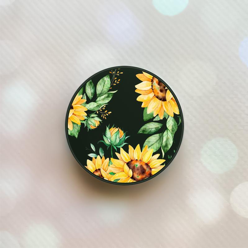 Держатель для смартфона / планшета попсокет popsocket черный :: подсолнухи (принт 288)